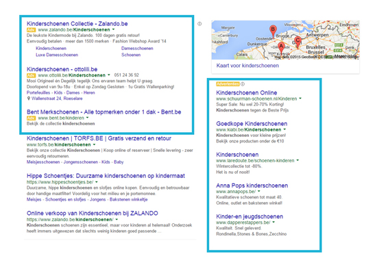 LET OP: adverteren via AdWords betekent niet dat u steeds een toppositie krijgt! Diegene die het hoogst biedt voor z'n advertentie en hiernaast een relevante advertentie en goed gestructureerde site heeft, zal de hoogste positie krijgen.
