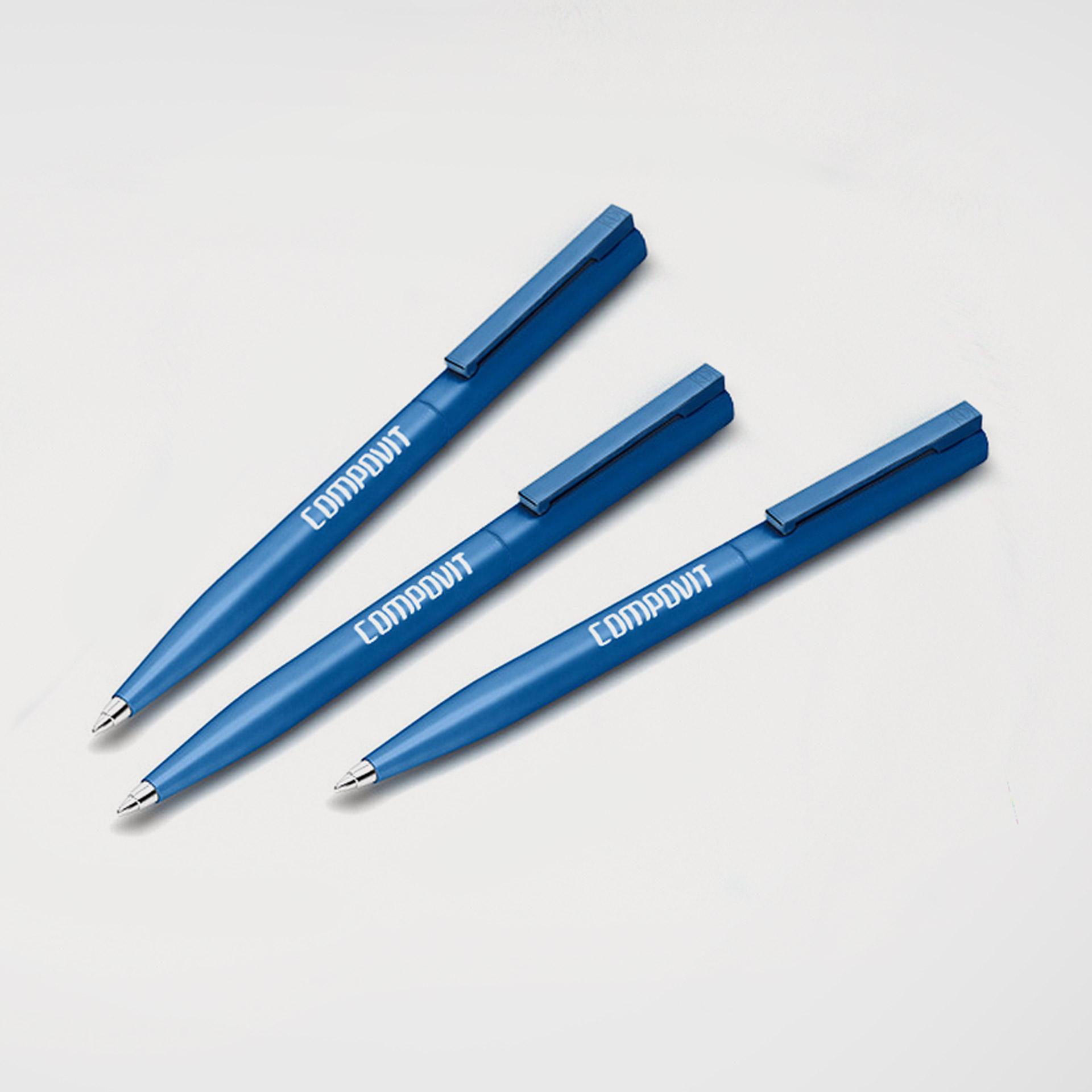 Grafisch bureau Publi4U stond in voor het ontwerpen en drukken van balpennen voor Compovit uit Rollegem en Veurne.