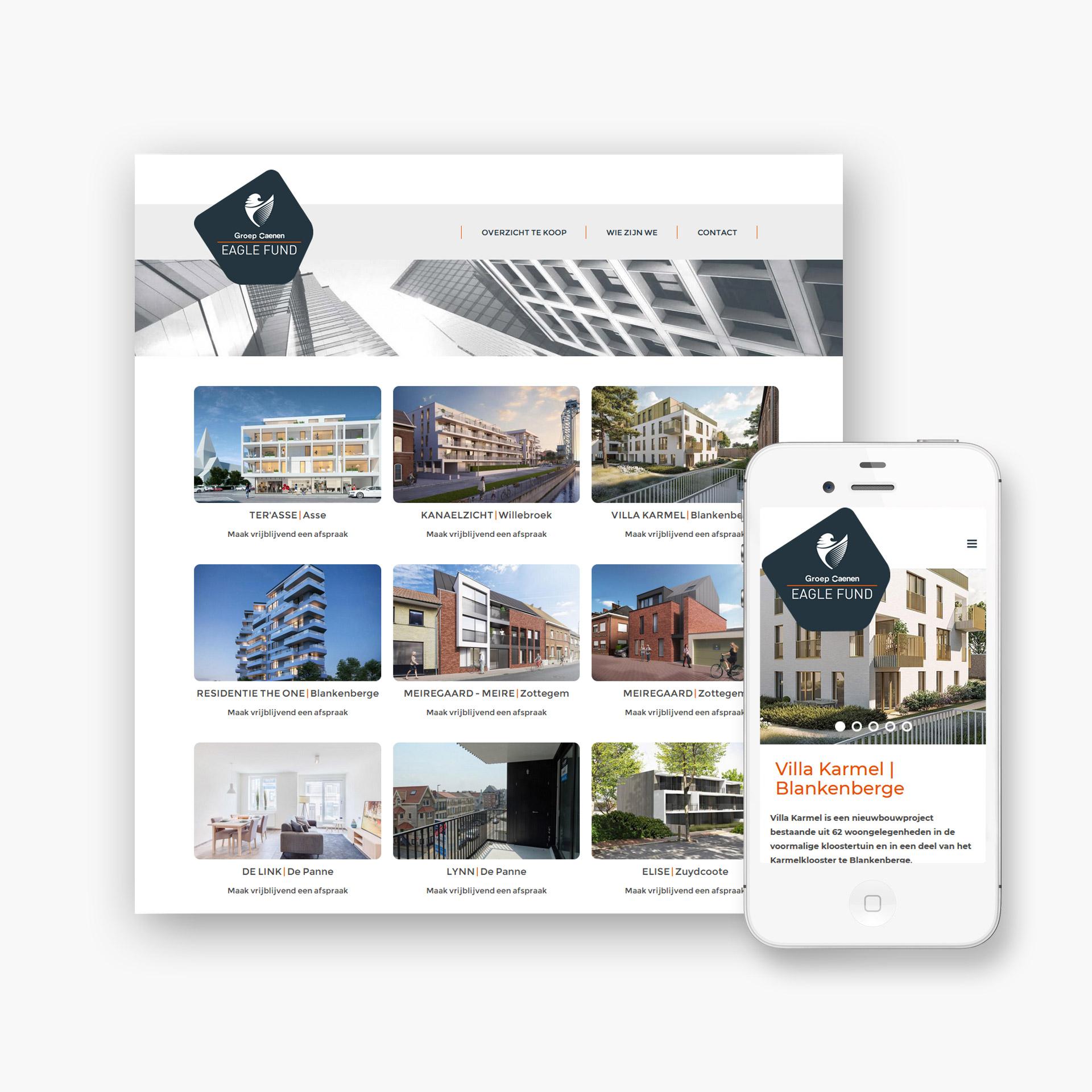 Voor Groep Caenen uit Middelkerke werd Eagle Fund, een immo projecten website gebouwd. De bedoeling is om het voor investeerders mogelijk te maken om op een veilige en tegelijk dynamische manier voornamelijk in residentiële vastgoedprojecten te investeren.