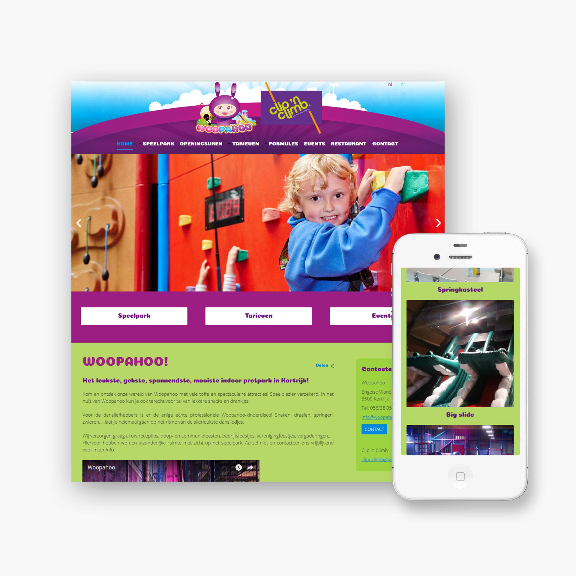 De website van Woopahoo Kortrijk werd ontwerpen door webdesigner Publi4U uit Zwevegem. De website is vooral gericht op kinderen, vandaar dat er gewerkt werd met leuke kleuren.
