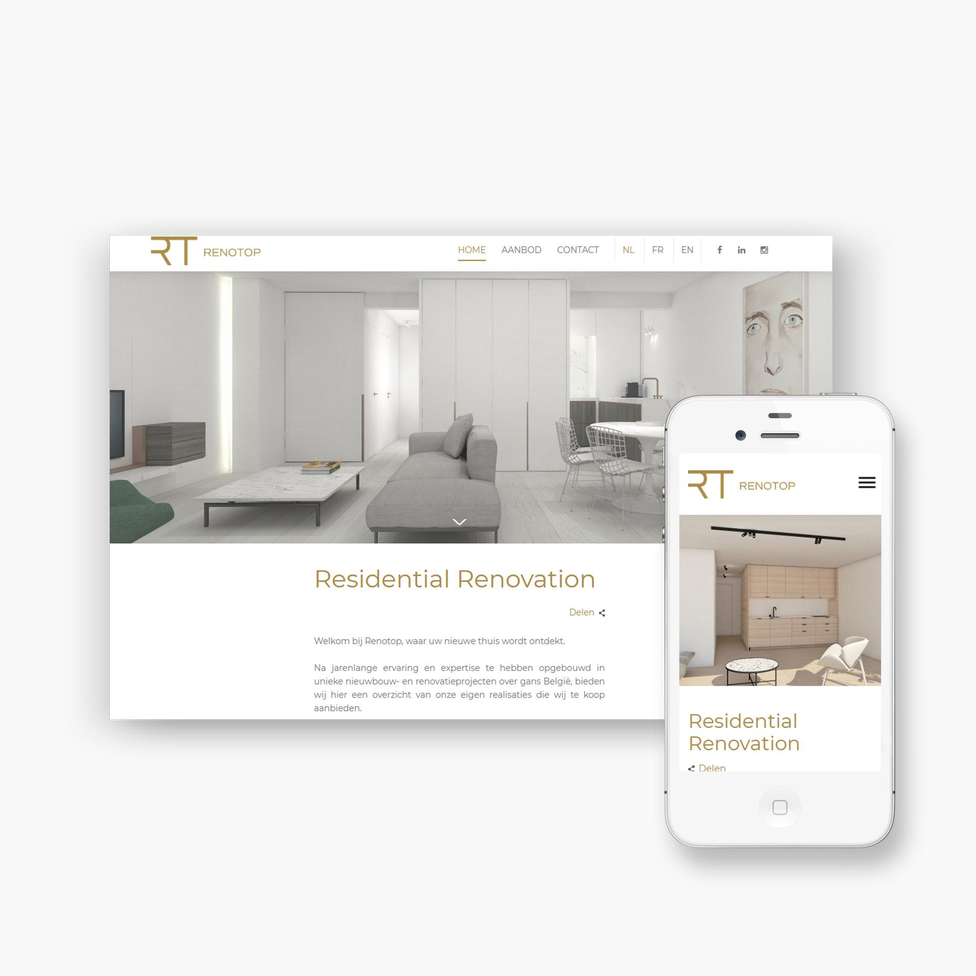 De website op maat voor Renotop straalt klasse uit door te werken met een lichte achtergrond en heel mooie beelden.