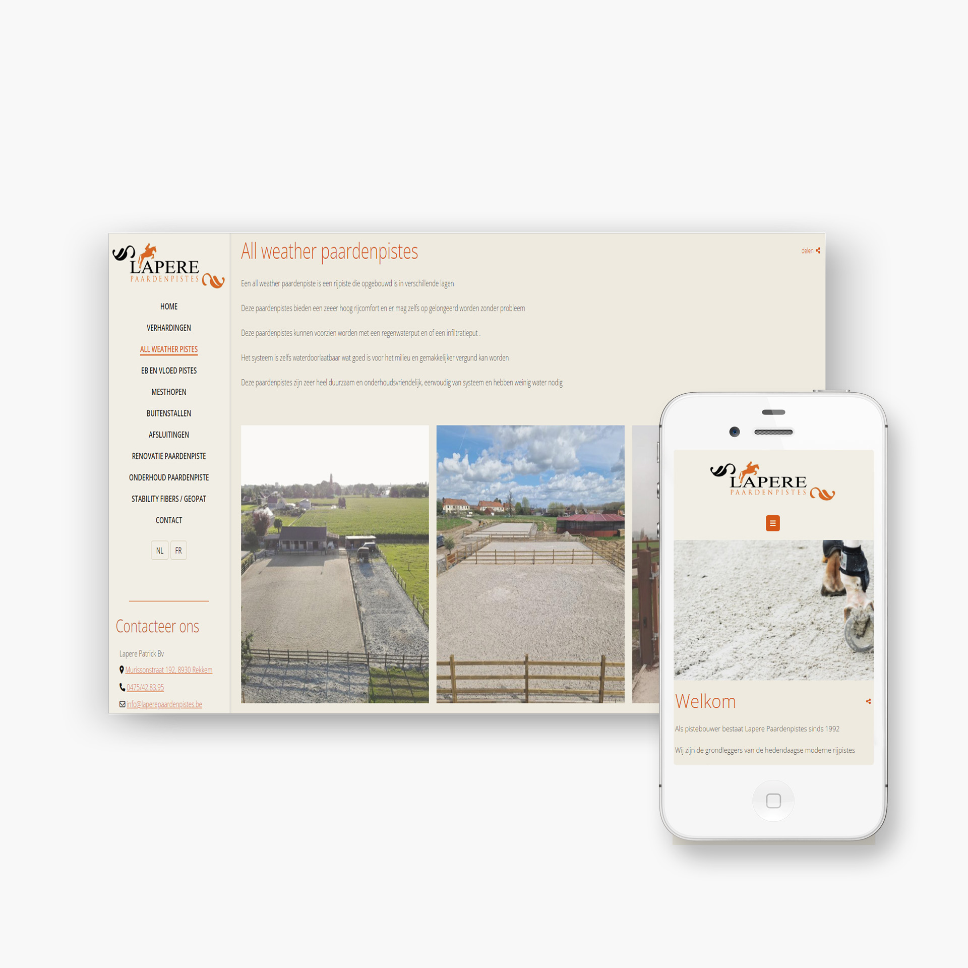 Bekijk realisatiePatrick Lapere van Lapere paardenpistes uit Rekkem nam contact op met webdesigner Publi4U uit Zwevegem omdat hij dringend een website nodig had. Binnen de twee weken stond de website online in zowel het Nederlands als het Frans.